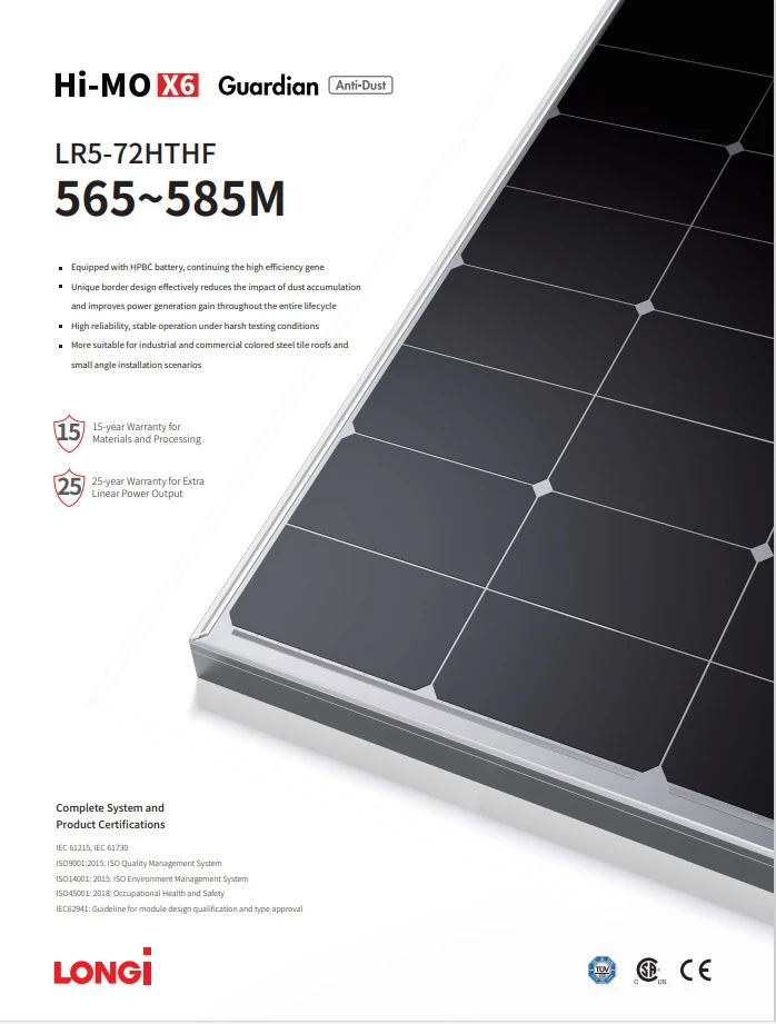 Tấm pin năng lượng mặt trời LONGi thuộc dòng Hi-Mo X10 630W~650W công nghệ HPBC đến từ thương hiệu LONGi Solar.